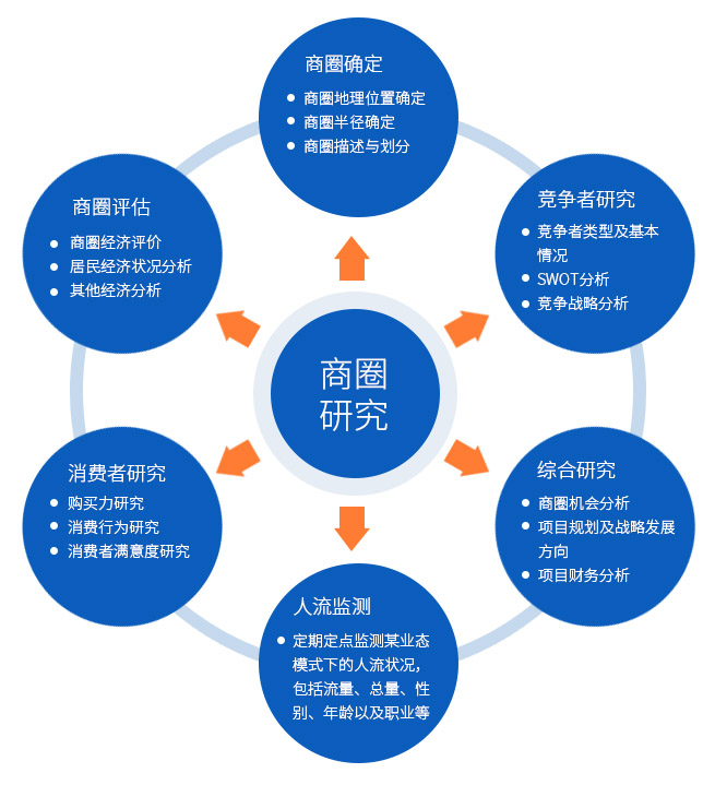 商圈研究是運用科學的市場調研方法,通過調查分析商圈的商業生態構成、影響范圍、商業特點以及影響等因素,為選擇商業營業或制定營銷策略提供科學依據,是分析商家的經營狀況、競爭力度、發展前景的重要手段,也可以為商家的投資和營銷策略提供支持性數據。在現代商業社會中,商圈研究已經是商家經營過程中非常重要的市場研究手段,幾乎所有大型或連鎖商業網點在新設網點或者變更經營范圍的時候都要采用商圈研究。