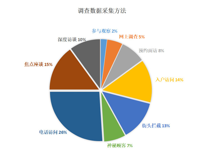 » 定量研究——隨機(jī)入戶訪問、街頭訪問、電話訪問、郵寄訪問、實(shí)地(時)監(jiān)測、