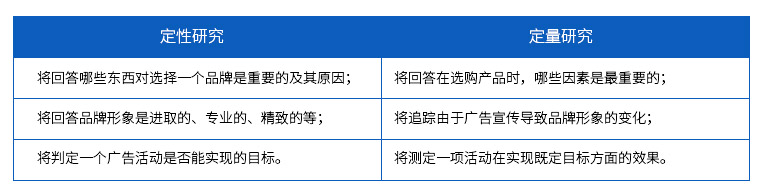 定性研究和定量研究在原理和方法上有著明顯的不同,定性研究回答“為什么”的問題,而定量研究回答“有多少”的問題。客戶可以使用定性研究進(jìn)行“認(rèn)識、發(fā)現(xiàn)、判斷、了解”,而不能使用它進(jìn)行“測量、監(jiān)控、估計(jì)、預(yù)測”,這方面的問題應(yīng)當(dāng)用定量研究的方法去解決。