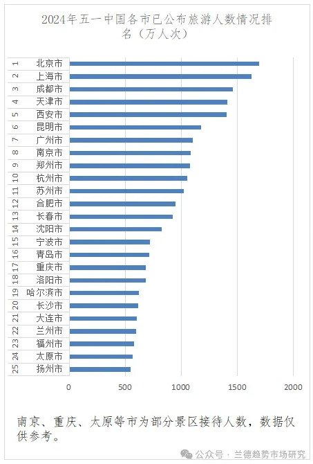 文旅部數(shù)據(jù)顯示,五一假期5天全國國內(nèi)旅游出游2.95億人次。根據(jù)公布數(shù)據(jù),2024年五一期間旅游人數(shù)省排名中,河南、安徽、貴州、四川、廣東五省旅游人數(shù)絕對值排名前五,江蘇省由于統(tǒng)計(jì)樣本僅限于部分景區(qū)在整個(gè)排名中暫居第八;市排名中,北京、上海、成都、天津、西安絕對值排名前五,南京市統(tǒng)計(jì)樣本僅限于部分景區(qū)在整個(gè)排名中暫居第八。