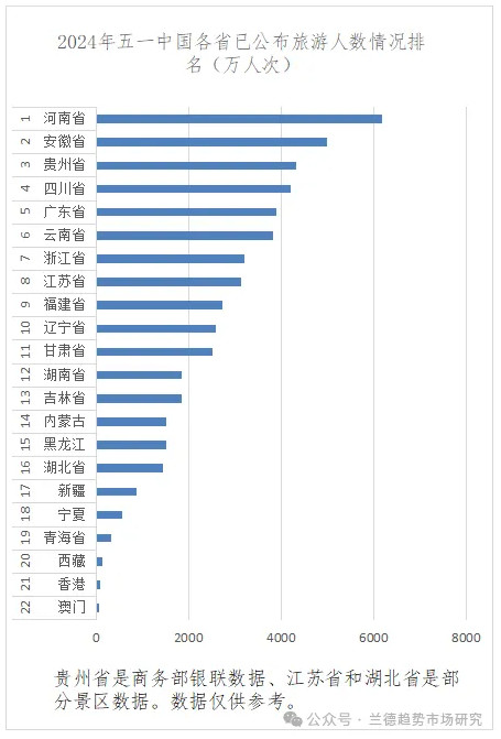 一 2024年五一中國各省市旅游數(shù)據(jù)絕對值排名統(tǒng)計(jì)