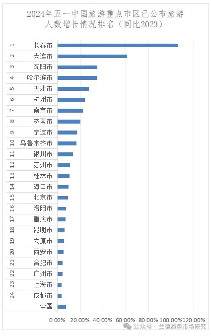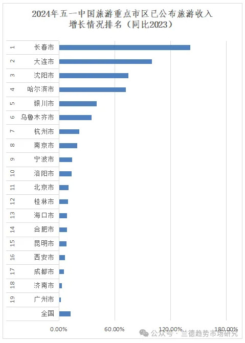 文旅部數(shù)據(jù)顯示,五一國內(nèi)游客出游總花費(fèi)1668.9億元,同比增長12.7%。根據(jù)公布數(shù)據(jù),2024年五一期間旅游收入增長省排名中,吉林、遼寧、內(nèi)蒙古、甘肅、新疆排名前五;市排名中長春、大連、沈陽、哈爾濱銀川排名前五。